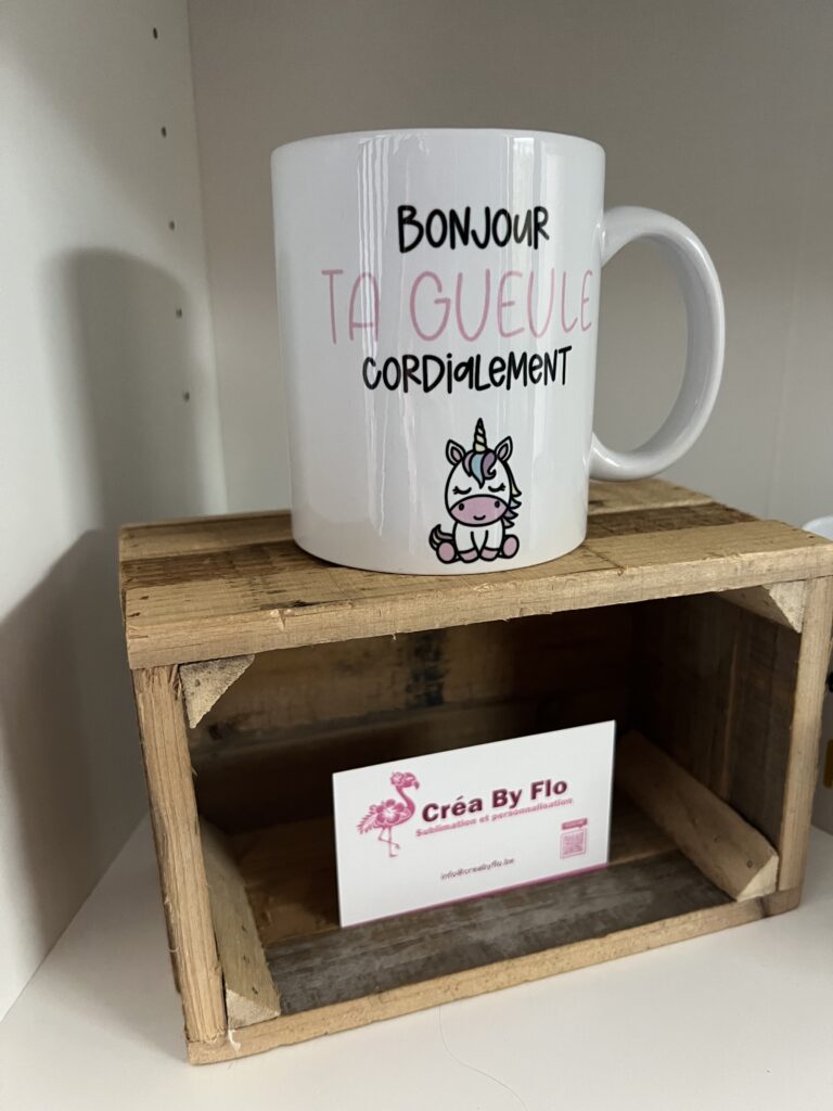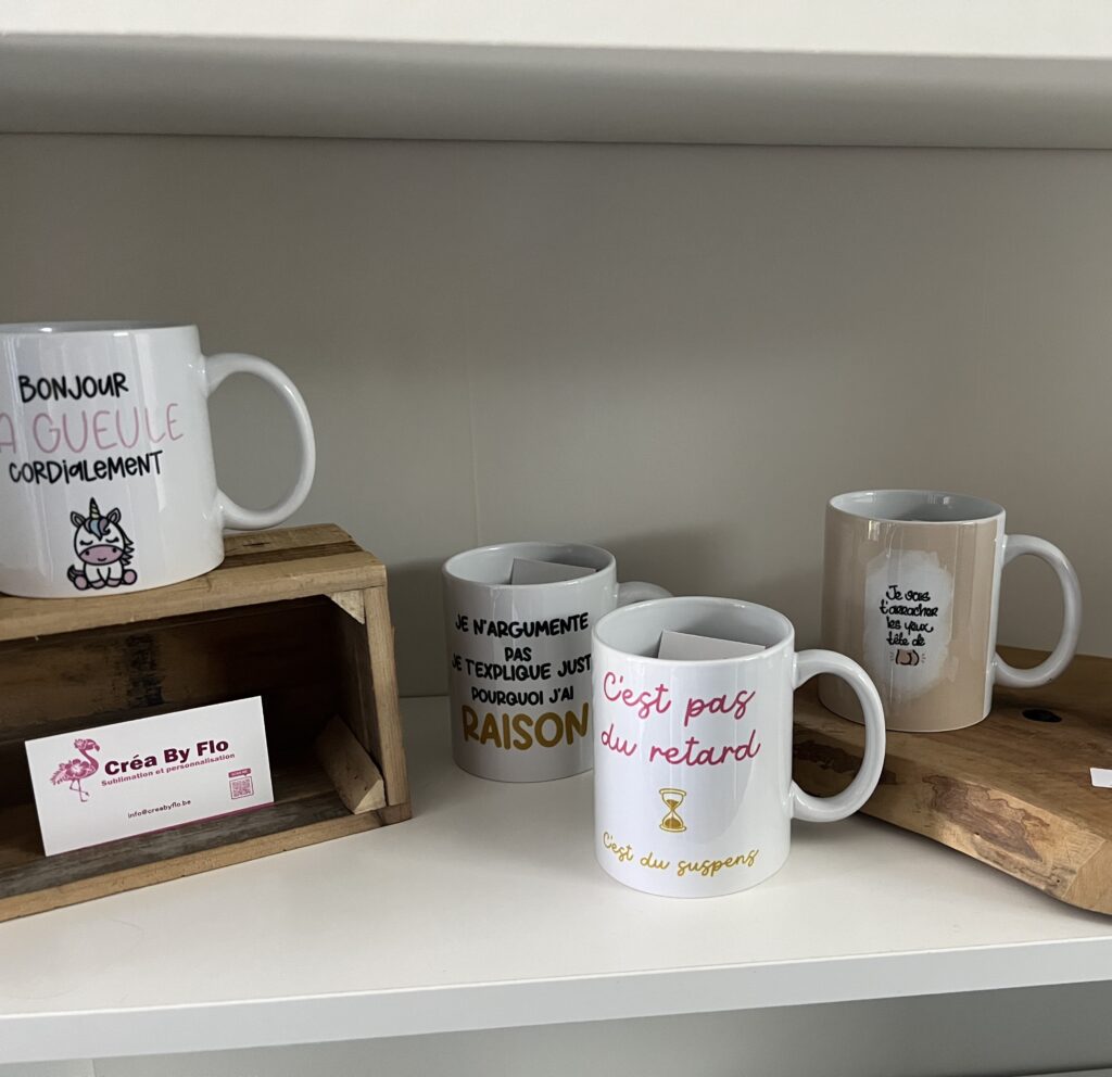 Créa By Flo réalise des mugs personnalisés sur mesure, avec photo, texte ou message.